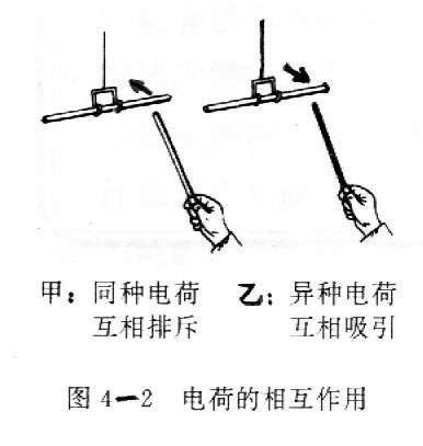 实验:用绸子、毛皮或尼龙布料在玻璃棒、橡胶律或塑料棒上摩擦几下,然后把棒靠近纸屑、头发、羽毛等轻个物体(图4-1),会看到什么现象?