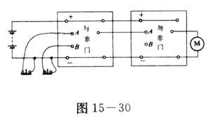 图15-30的电路同样可以用来保证汽车前后门都关紧时,汽车才能开动。